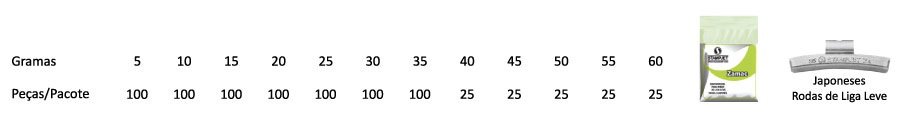 | CONTRAPESO PARA RODAS DE LIGA LEVE FABRICANTES JAPONENSES | |